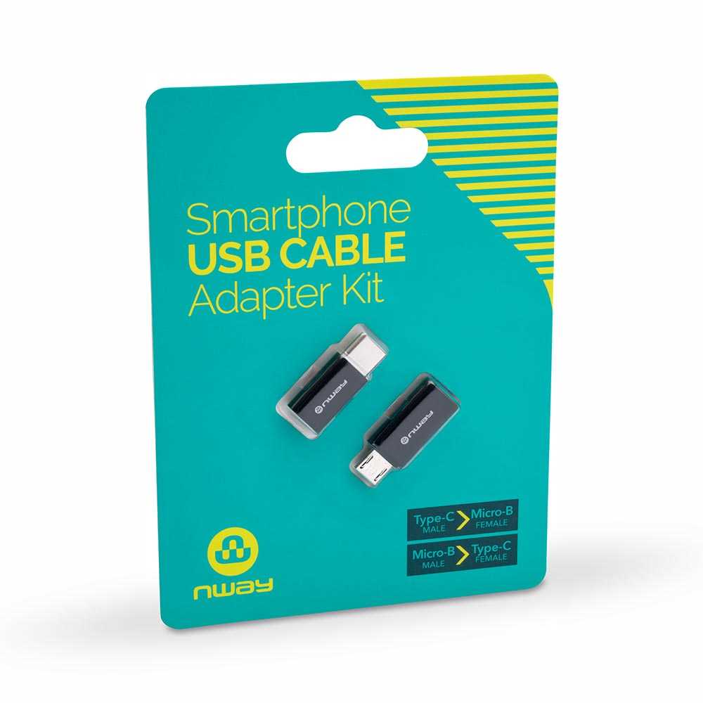 Kit de Adaptadores NWAY para cabos USB composto de uma unidade Tipo-C para micro-B e uma unidade de micro-B para Tipo-C.